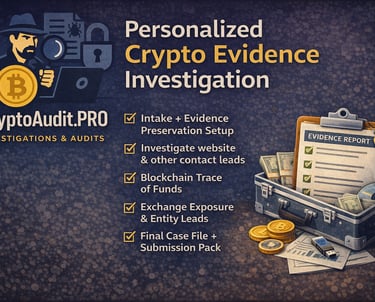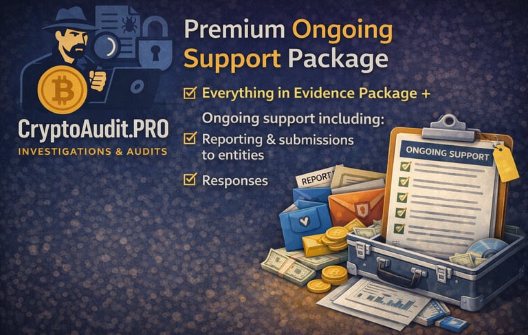 This is our core service — a structured blockchain trace and forensic documentation process designed to produce a professional, evidence-grade report.