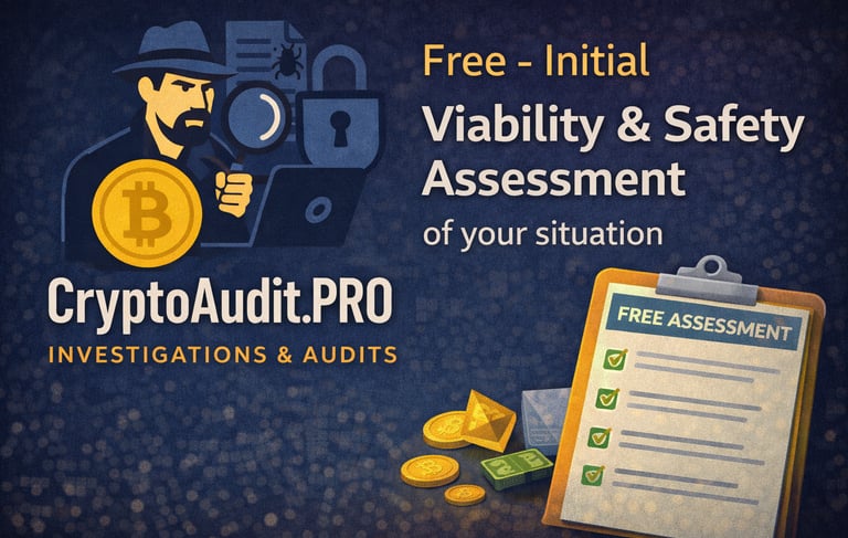 If you believe you’ve been involved in a crypto scam, your first priority is preventing further loss and understanding whether a professional investigation would be worthwhile.